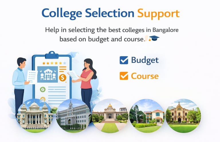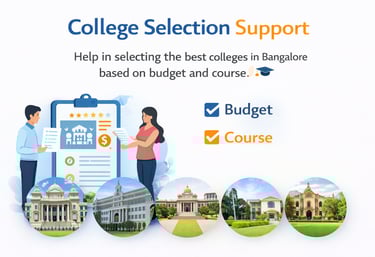 We help students secure admission in some of the best colleges in Bangalore known for quality education and placements.Engineering Colleges,Medical & Nursing Colleges, Management Institutes,Degree CollegesOur team will guide you to choose the right college based on your career goals and budget.
