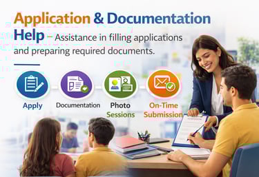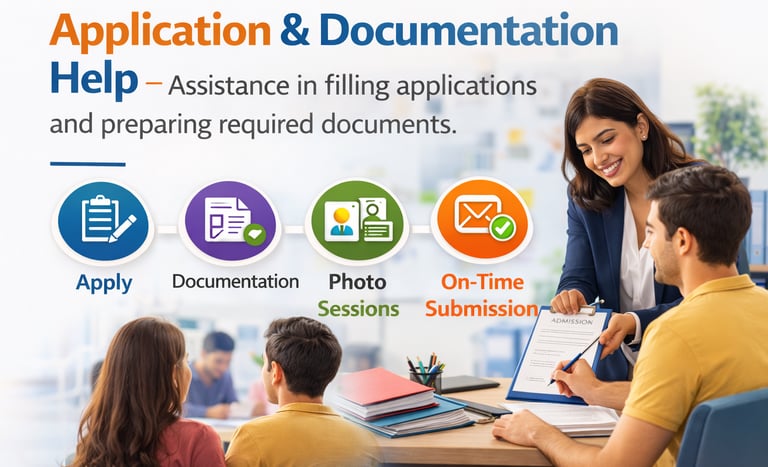 Assistance in filling applications and preparing required documents.